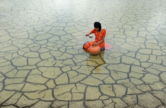 一名妇女在印度孟加拉邦收集雨水,摄于2012年。印度摄影师Prasanta Biswas参赛作品。